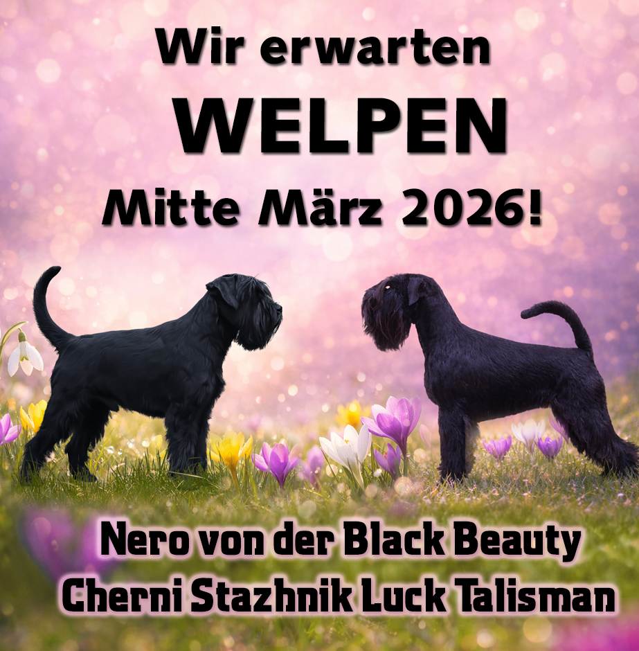 Wir sind die Familie Balychev aus Göttingen / Niedersachsen. Unsere erste schwarze Mittelschnauzer-Hündin (Cherni Strazhnik Truely Yours, genannt Blacky) zog 2007 bei uns ein. Seit 2010 züchten wir unter dem Namen Cherni Talisman (schwarzer Talisman) schwarze Mittelschnauzer (Standardschnauzer) nach den Richtlinien des PSK (Pinscher- und Schnauzer-Klub 1895 e.V.), einem Rassezuchtverein innerhalb des VDH (Verband für das Deutsche Hundewesen). In unserer Zucht steht die Gesundheit an erster Stelle, daher sind Gesundheitsuntersuchungen unserer Hunde in regelmäßigen Abständen obligatorisch. Auf Ausstellungen im In- und Ausland sind viele unserer Hunde sehr erfolgreich. |